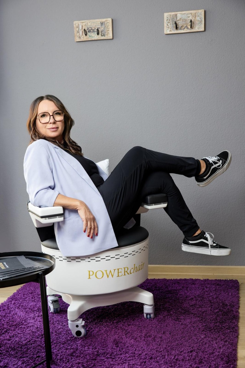 Der POWERchair ist die moderne Antwort auf Beckenbodentraining – ganz ohne Anstrengung, bequem im Sitzen und mit spürbaren Ergebnissen. In nur 30 Minuten werden bis zu 15.000 gezielte Muskelkontraktionen ausgelöst – das entspricht einem halben Jahr klassischem Beckenbodentraining bei regelmäßiger Durchführung.