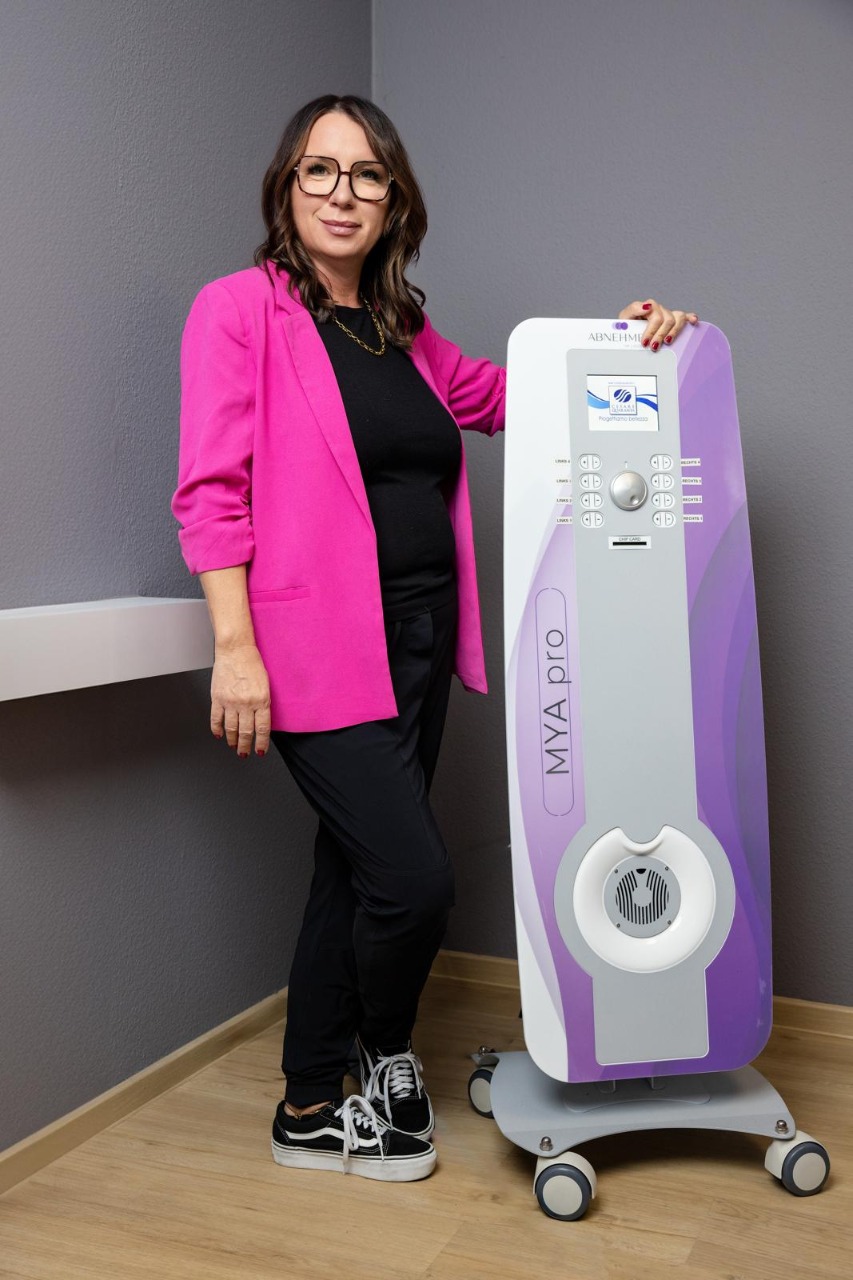 Mit dem Mya Pro-System kombinieren wir EMS-Stimulation, Wärme und Ultraschall zu einer innovativen Methode, die gleich doppelt wirkt: Sie regt gezielt den Stoffwechsel an und aktiviert deine Muskulatur – ohne dass du dich dafür anstrengen musst.